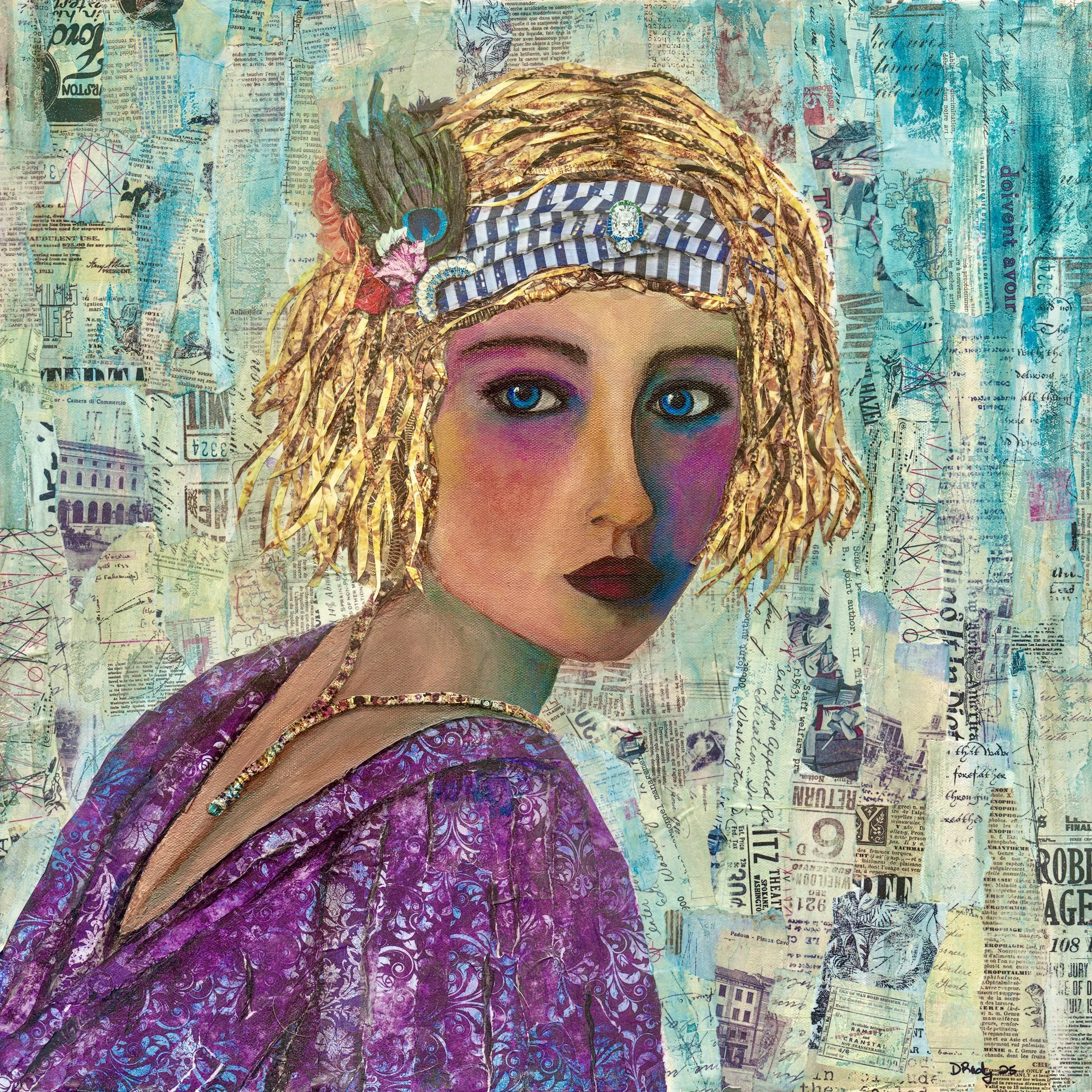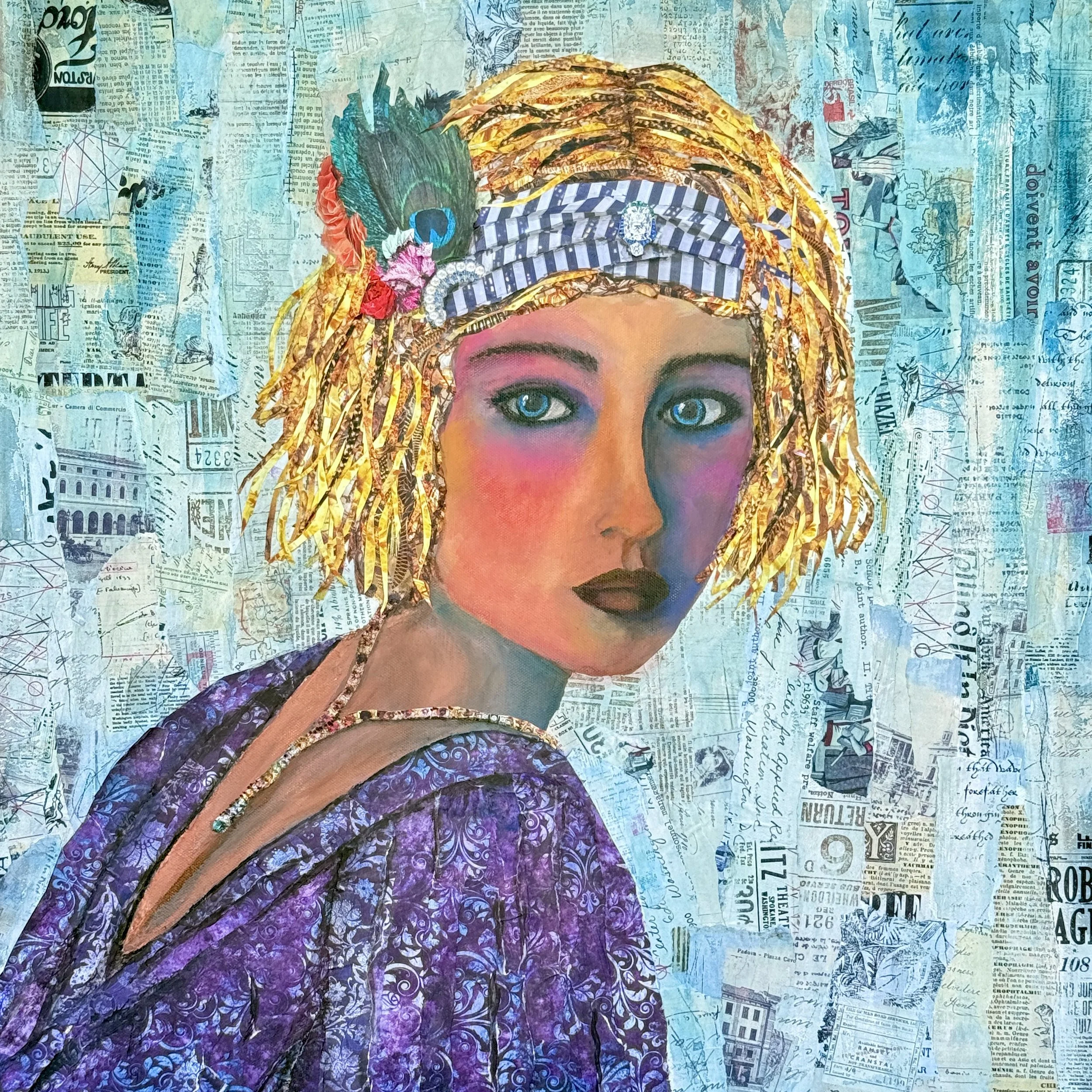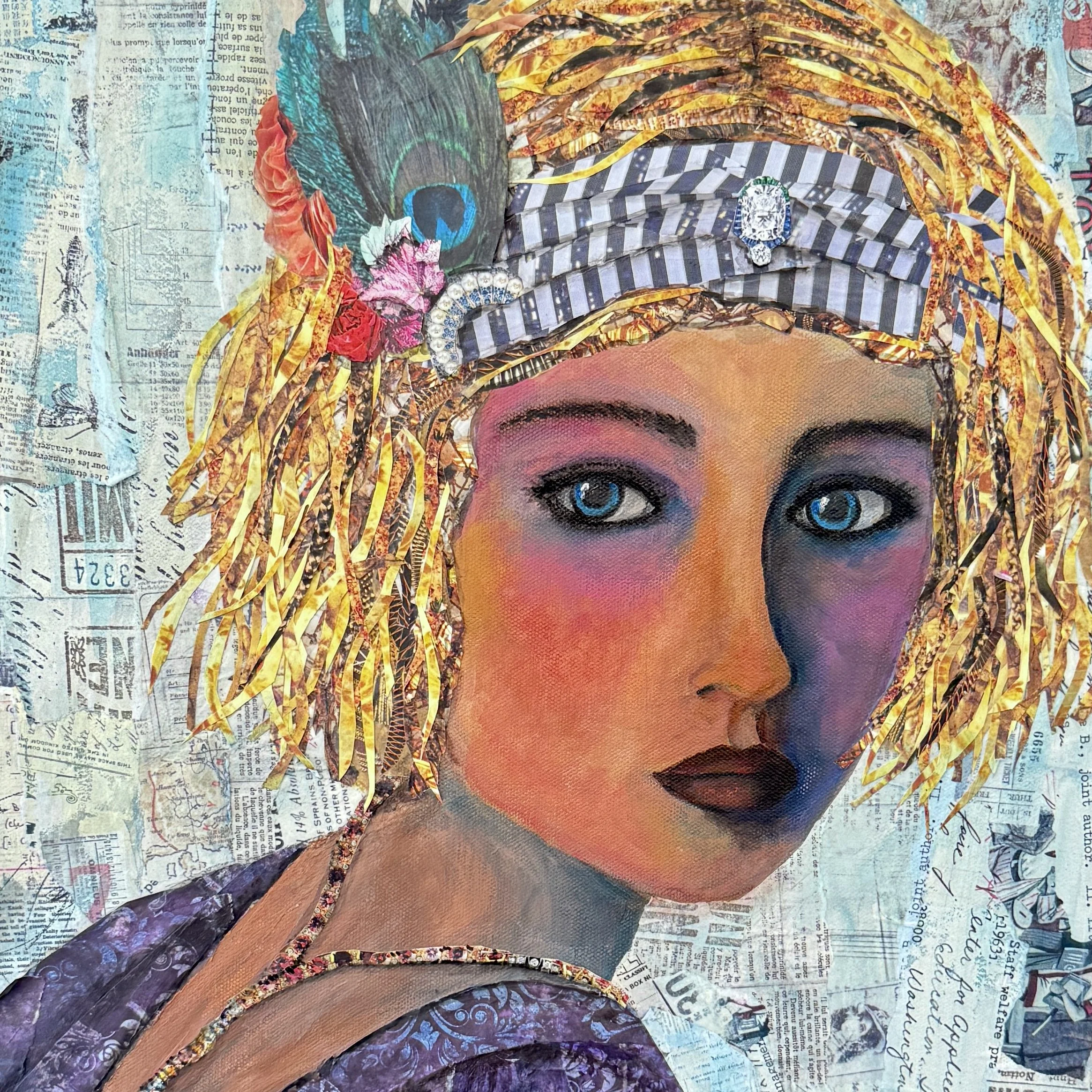 “24x24” Mixed Media Art using Acrylic Paint for her face and the rest is Paper on canvas can be framed or unframed