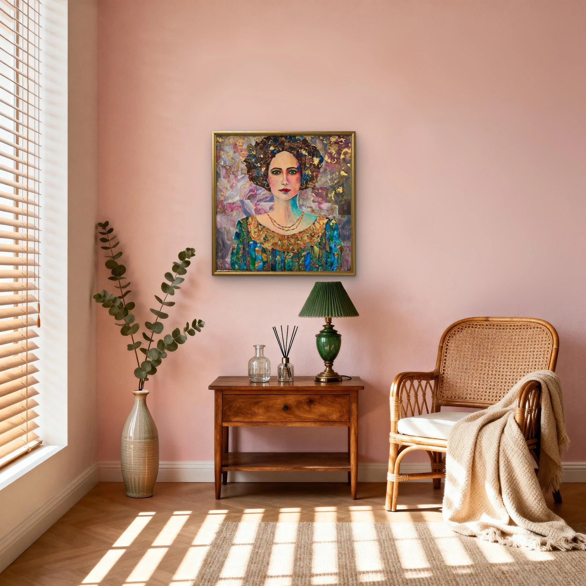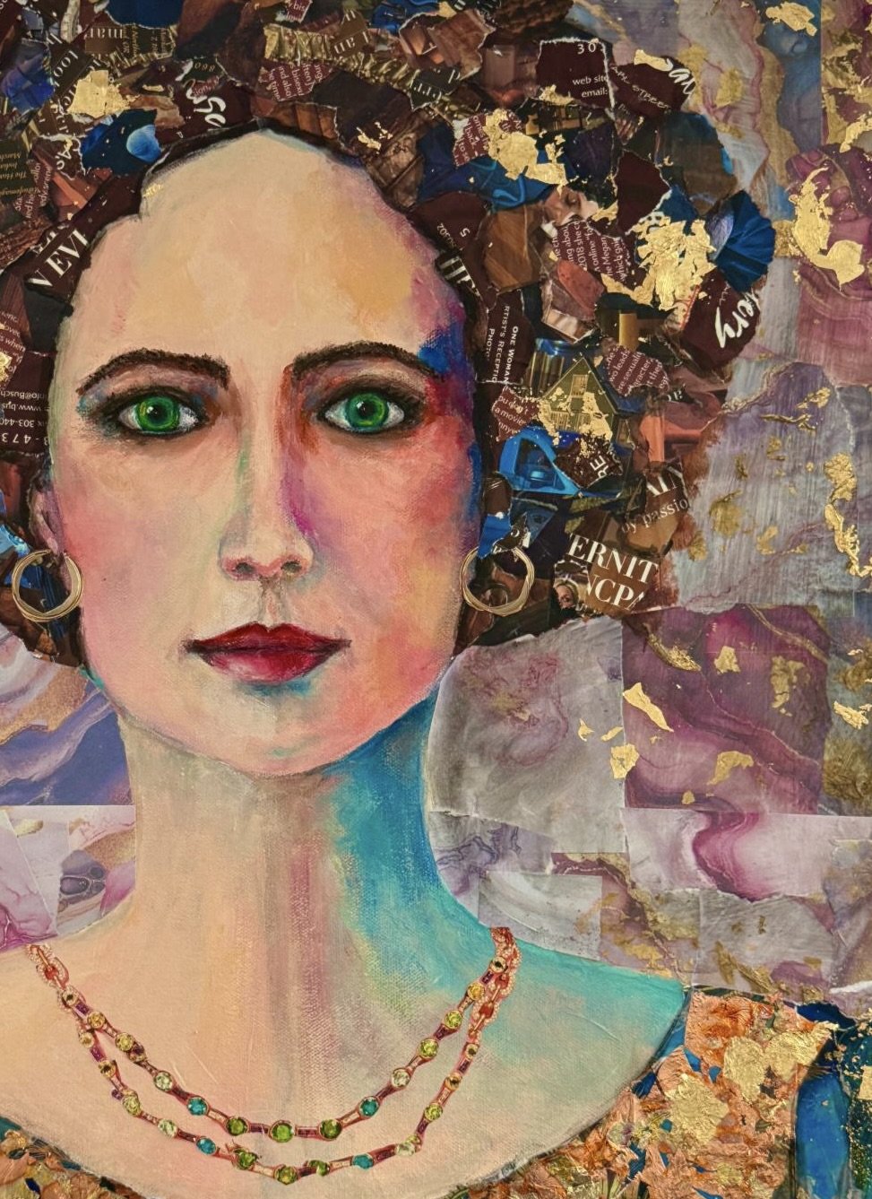 “24x24” Mixed Media art on canvas using paper, gold leaf and acrylic paint
