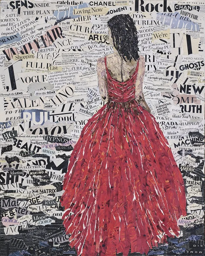 “24x30” Original Collage art on canvas using only torn paper and glue $3900