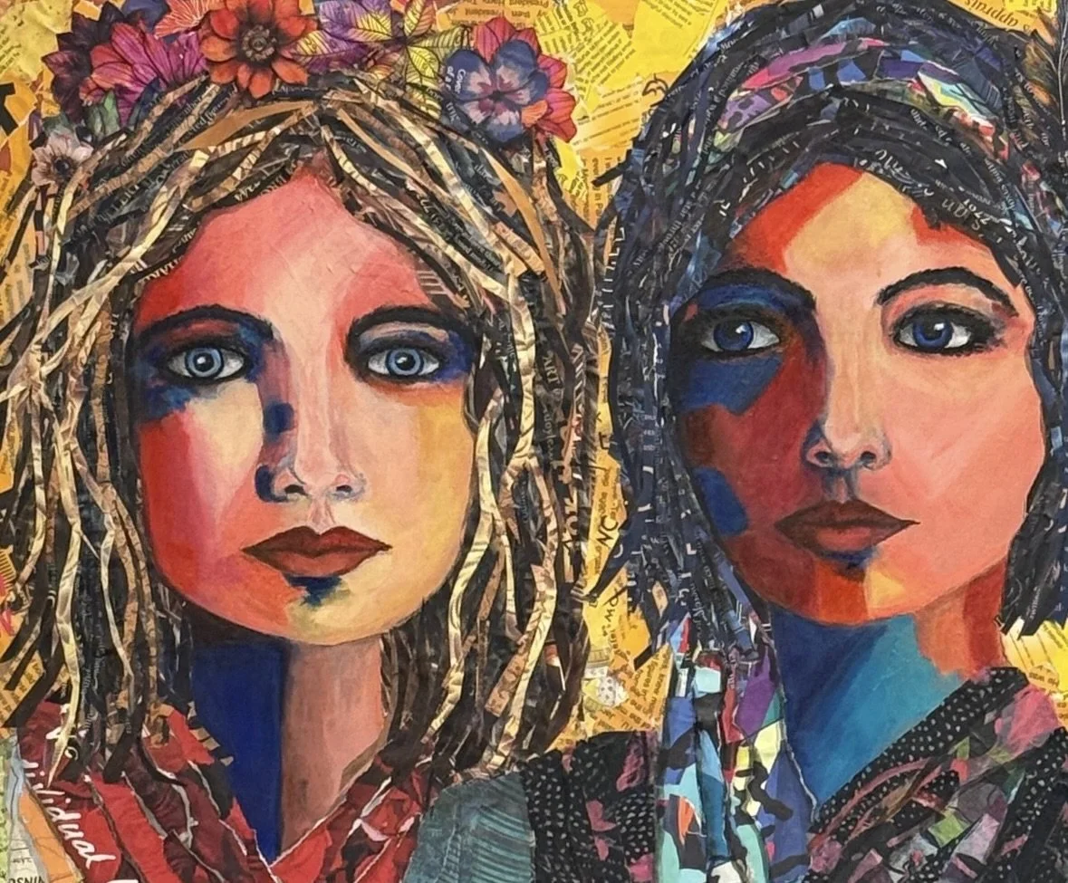 “24x24” Mixed Media art on canvas using paper and acrylic paint